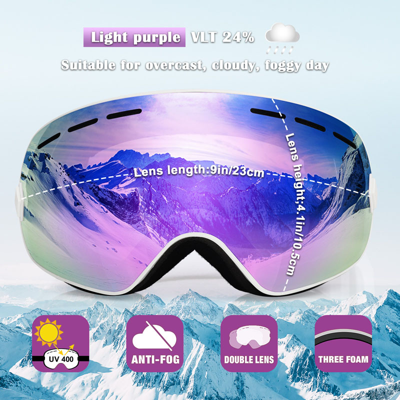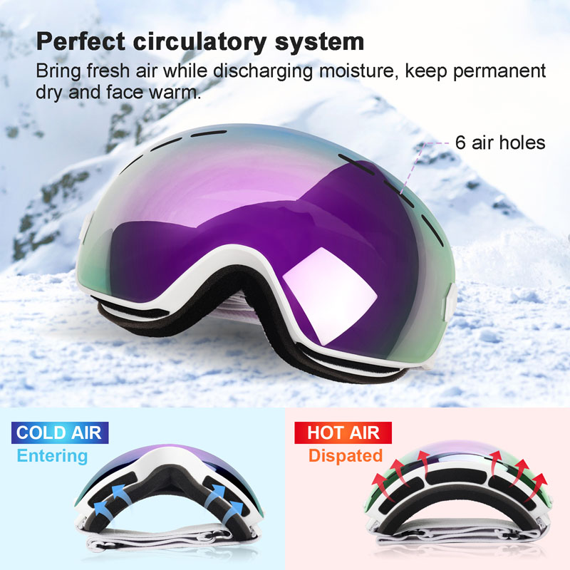 L'obiettivo a doppio strato per impedire di fogare lo sci o lo snowboard. Lo sci goggle ha anche un sistema di cambio di aria intelligente per mantenere una giusta temperatura nello occhiali per evitare che il fogging.